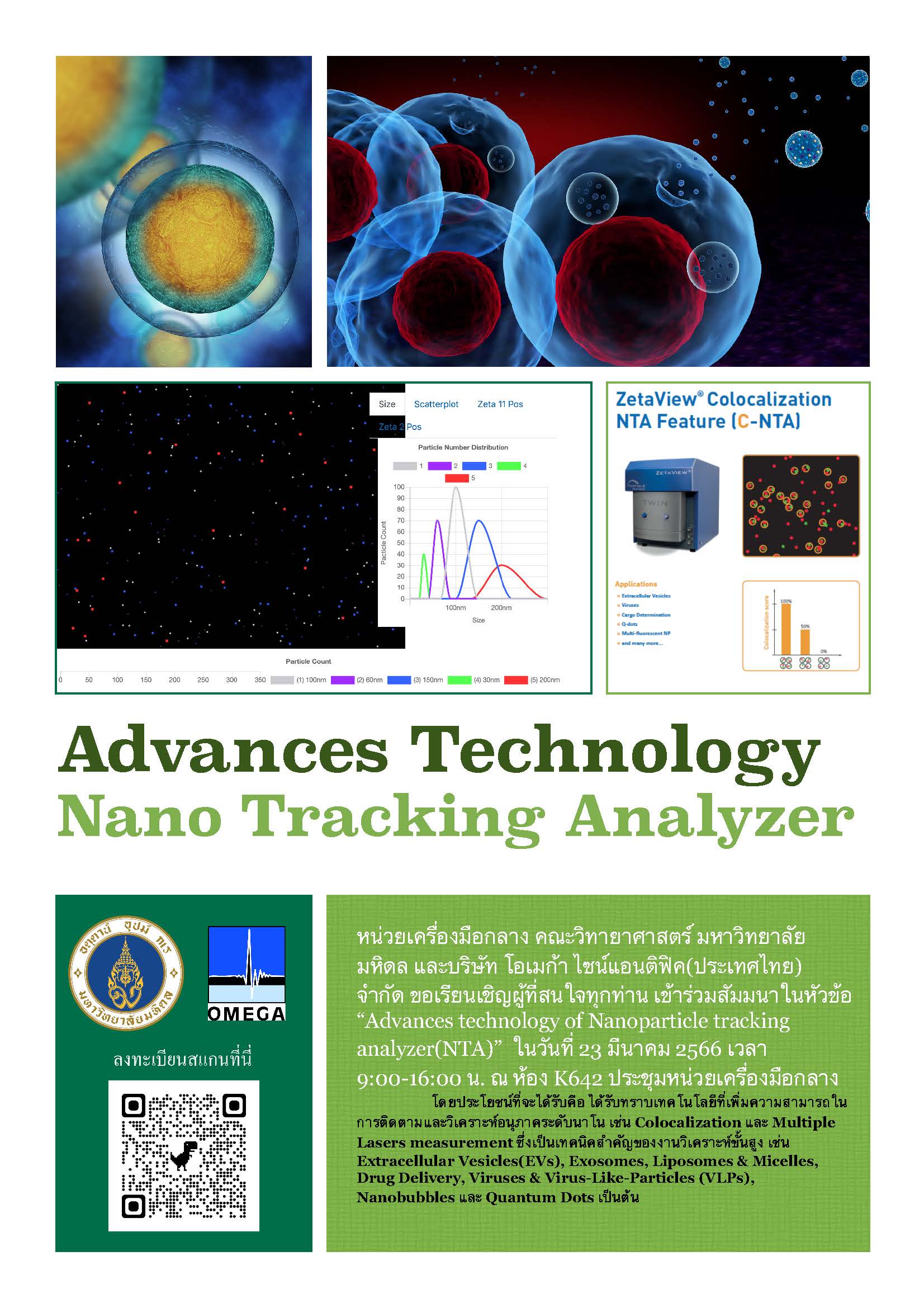 ประโยชน์ที่จะได้รับคือ ได้รับทราบเทคโนโลยีที่เพิ่มความสามารถในการติดตามวิและเคราะห์อนุภาคระดับนาโน เช่น Colocalization และ Multiple Lasers measurement ซึ่งเป็นเทคนิคสำคัญของงานวิเคราะห์ขั้นสูง เช่น Extracellular Vesicles(EVs), Exosomes, Liposomes & Micelles, Drug Delivery, Viruses & Virus-Like-Particles (VLPs), Nanobubbles และ Quantum Dots เป็นต้น